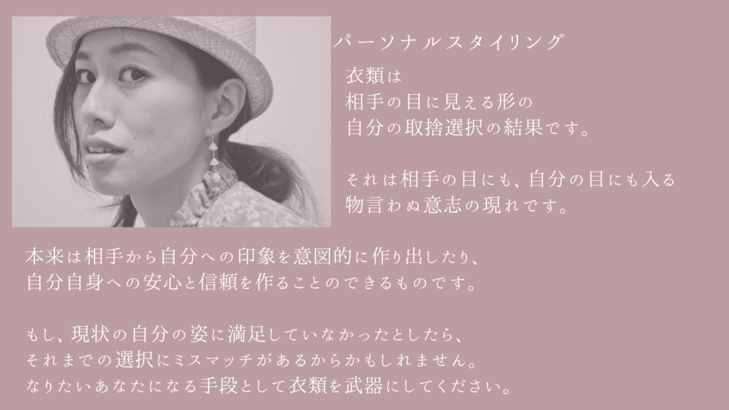 パーソナルスタイリストでもある人首美佳子のメニューです。
